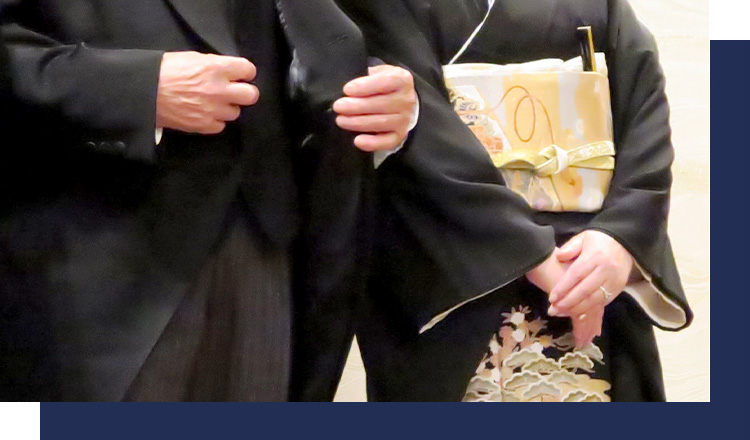 和装花嫁に憧れる方には西陣織や友禅染、豪華な刺繍などを施した伝統的な和装もご用意しています。白無垢、色打掛、お引き振袖などの他、新郎様の和装も様々な色や素材のものをご用意しています。